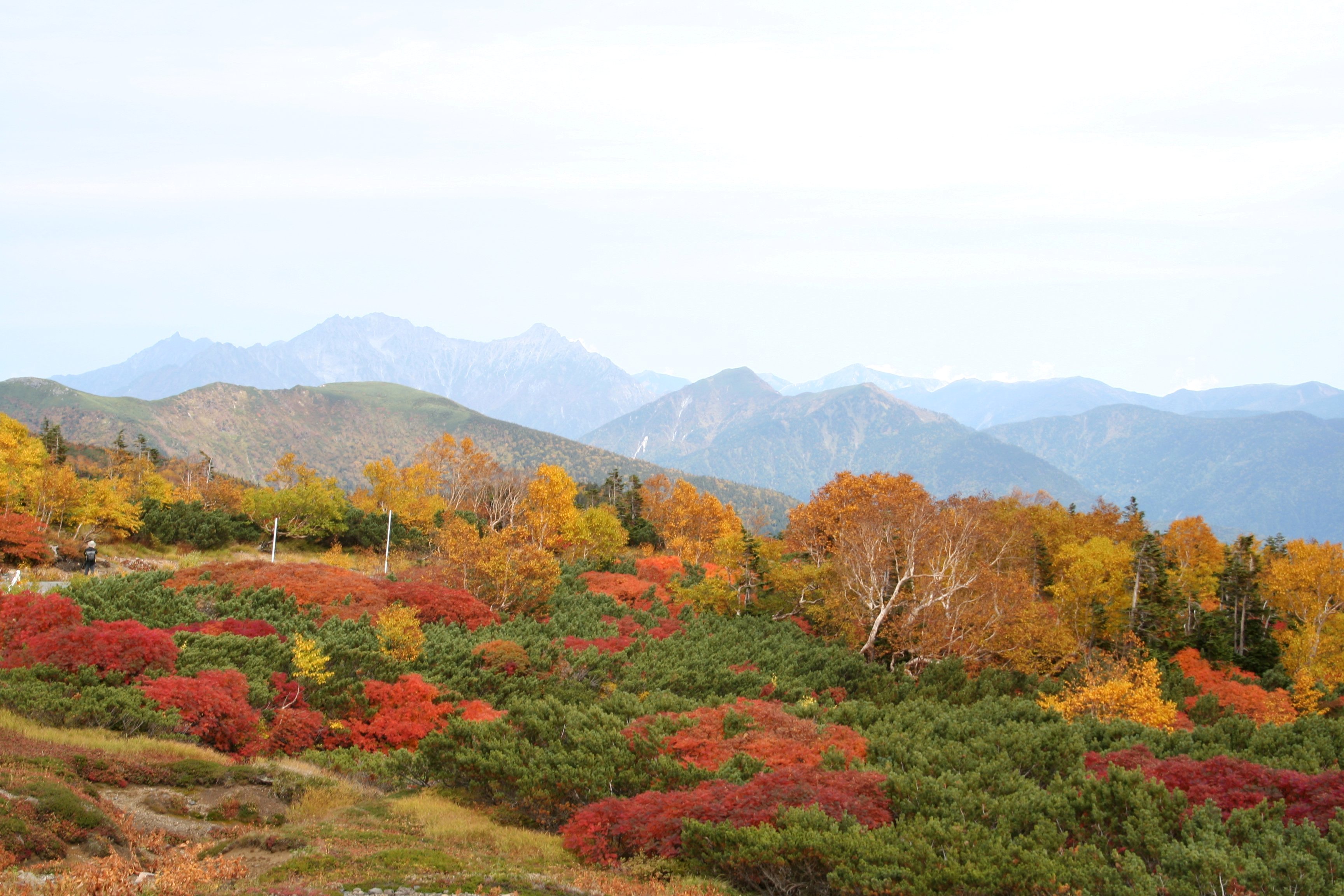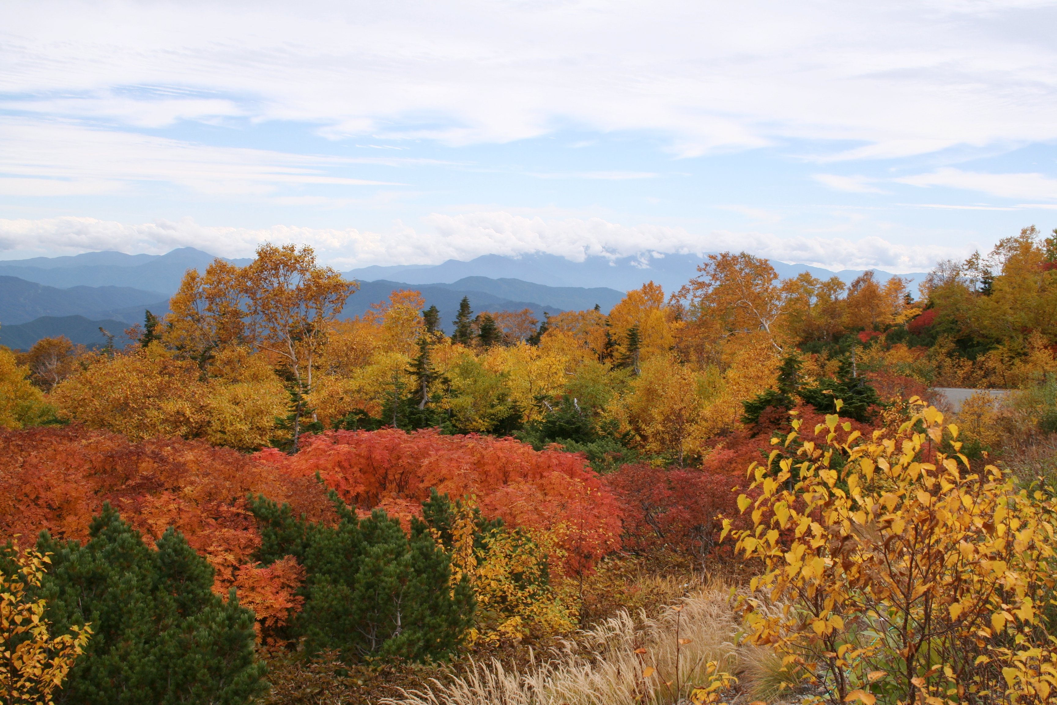 | 中部山岳国立公園の 紅葉、 乗鞍(標高3,026m〜1,200m)では例年、 9月20日前後〜10月末迄の間、山岳地帯を駆けおりる 鮮やかな雲上紅葉を楽しむことが出来ます!