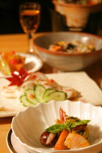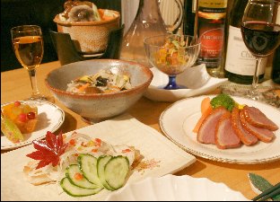 | 和食中心オリジナルの品々が夕食(6時半頃)のテーブルを飾ります。 |